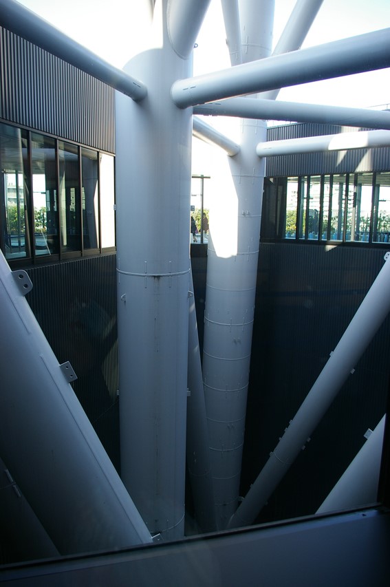 ↑傾き始めた太陽の光を受ける、展望回廊。