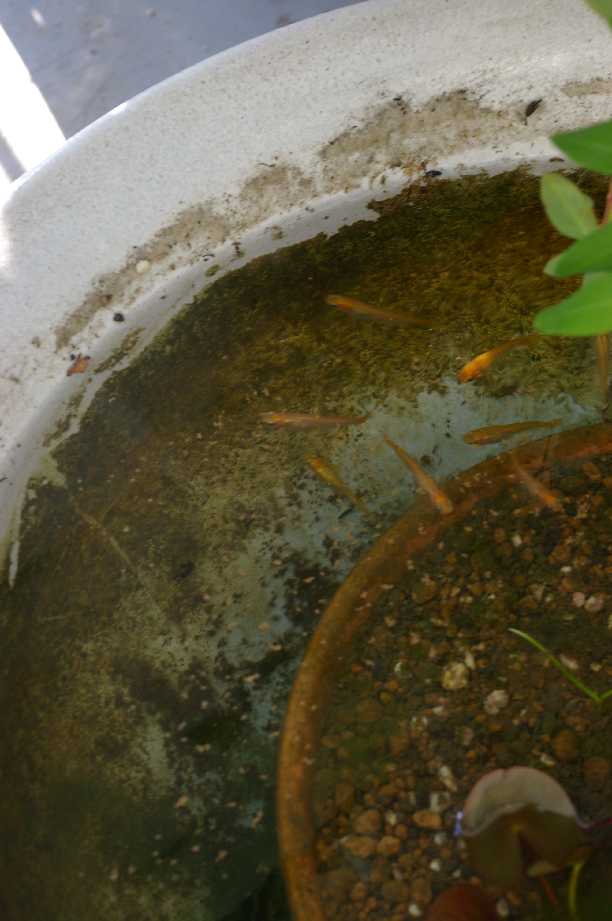 IMGP2275←睡蓮鉢に去年、放したメダカ達。冬を超えてくれたのです!
