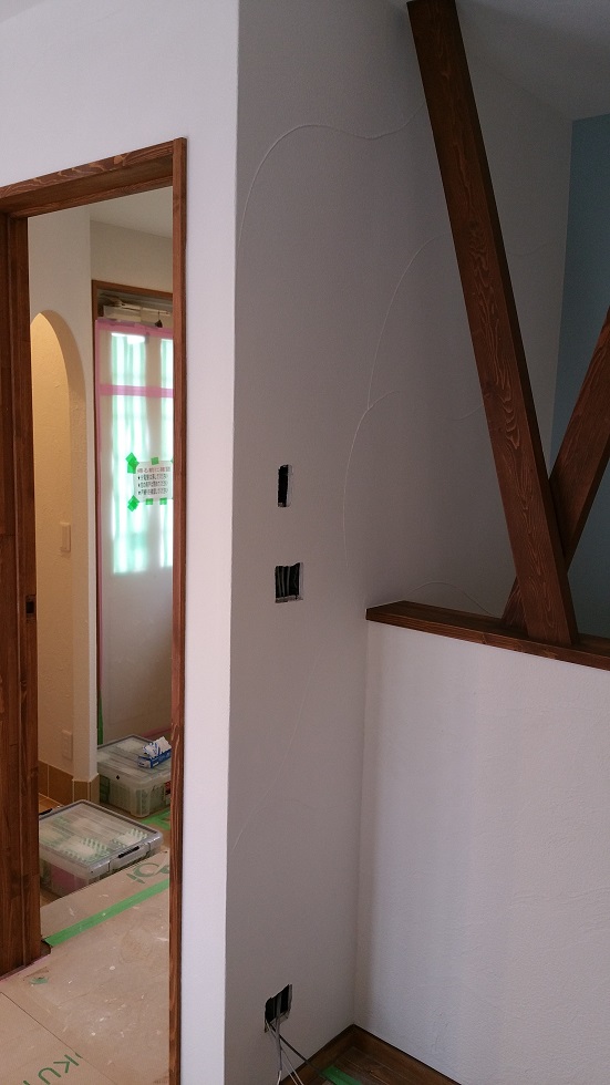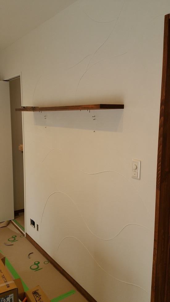 リビングのメインの壁面に施工させて頂いた、珪藻土のウェーブパターン。