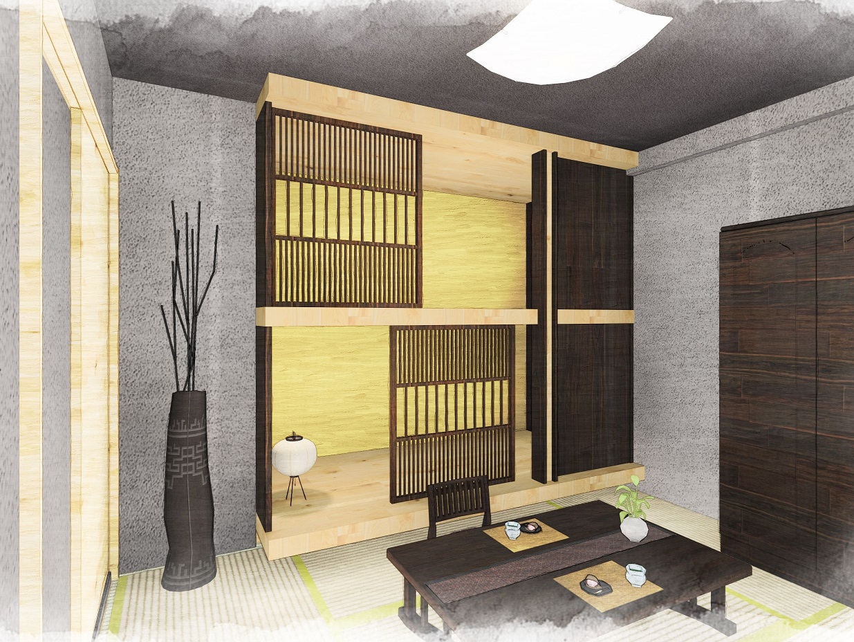 お客様を招いて寝泊りが出来る2段ベッドのような形に☆