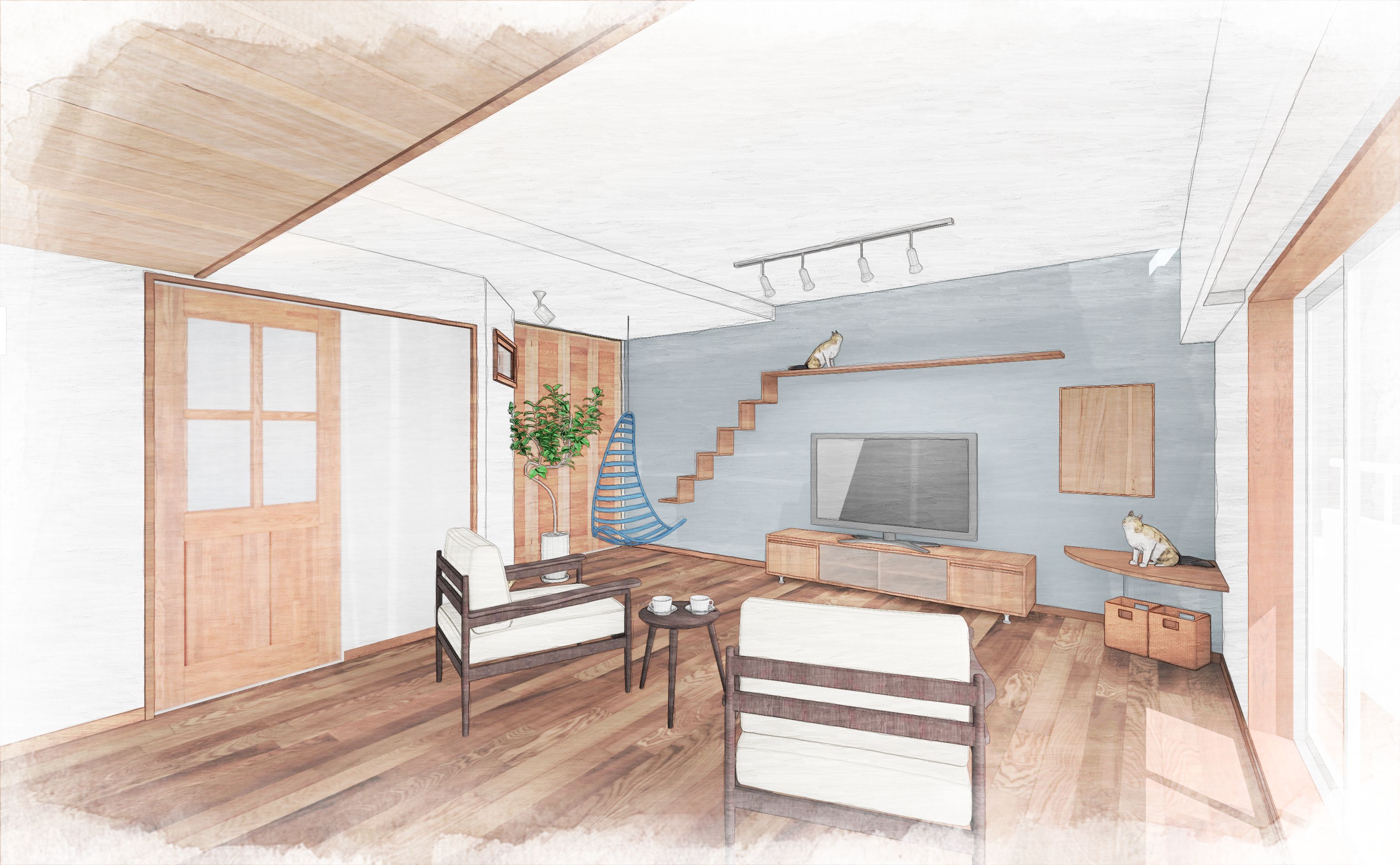 大切な家族、猫ちゃんの為にキャットウォークを設けたリビングリフォーム。