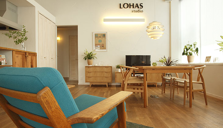 無垢の素材と、高い天井が、心おちつく空間となっています。
