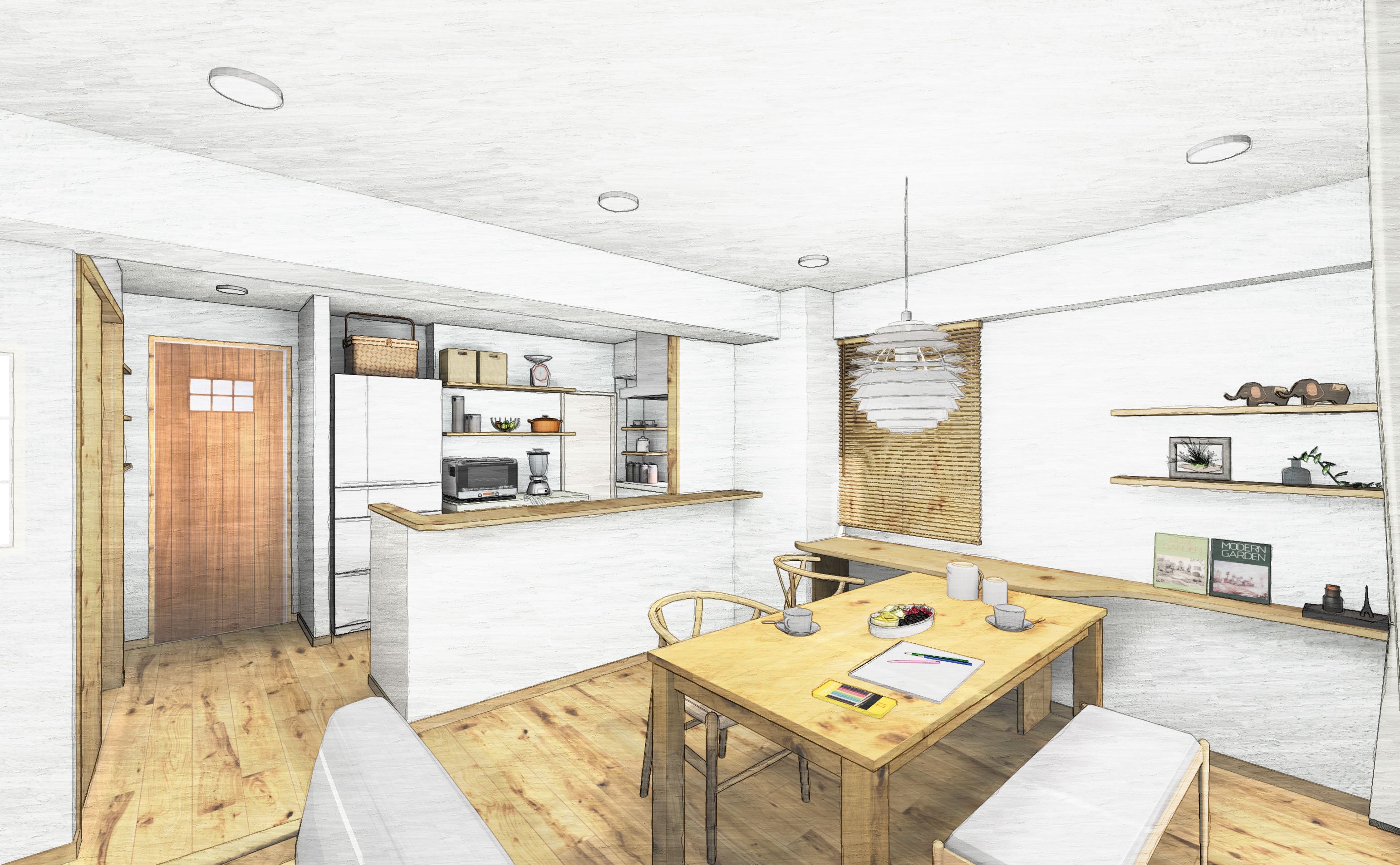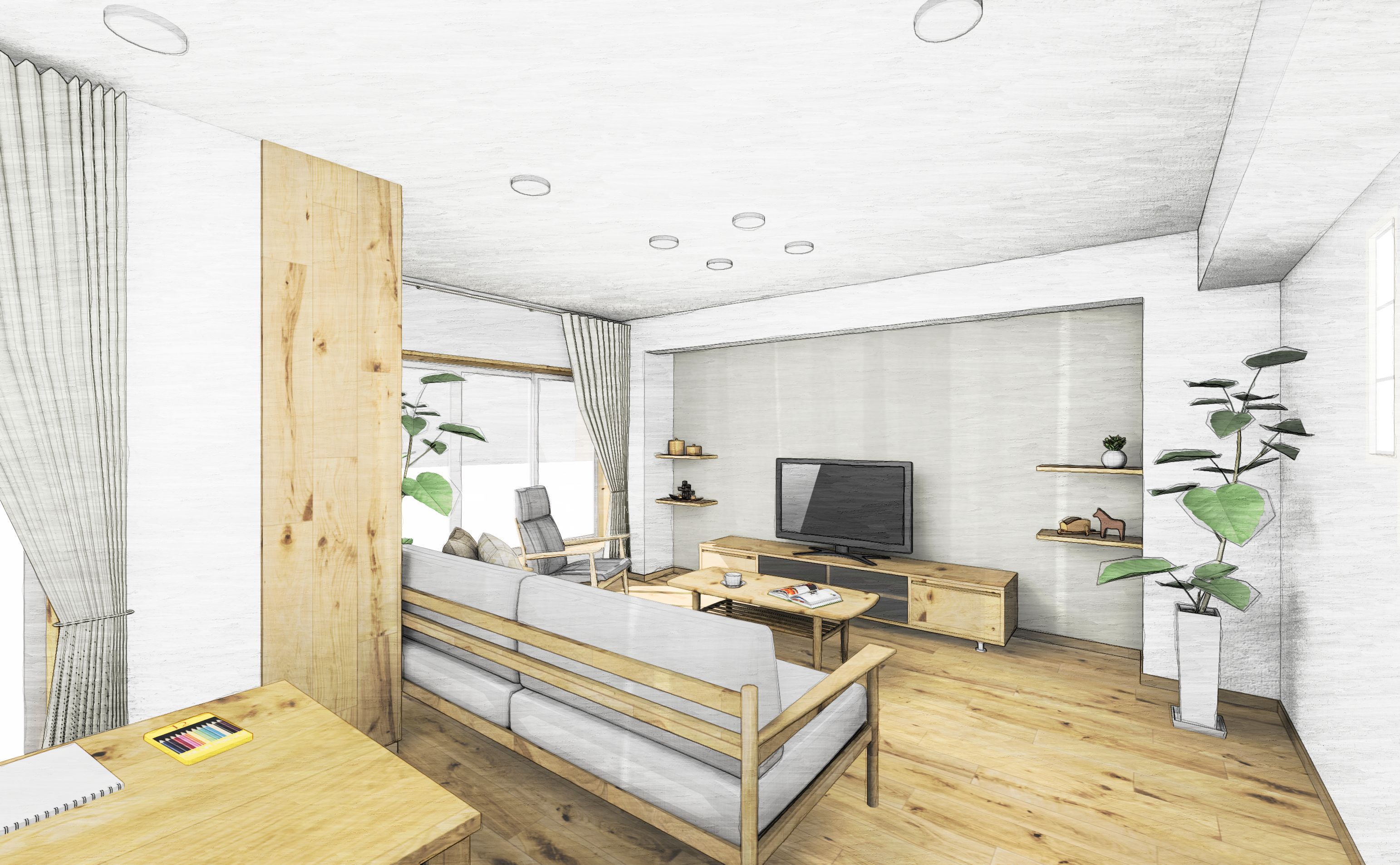 お打合せ中のF様邸。 ナチュラルテイストなインテリアです。 陽の光を取り込み、暖かく、明るい空間で過ごされる、 ご家族の笑顔を想像しています☆
