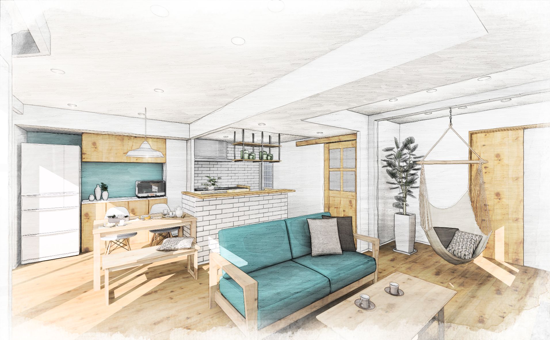 ご希望のハンモックも加わり、シンプルかつこだわり感じるデザインに。