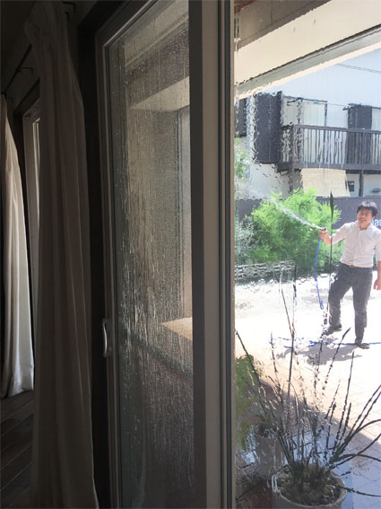 ▼横浜店の特徴・建材ルームの屋根を水洗い!