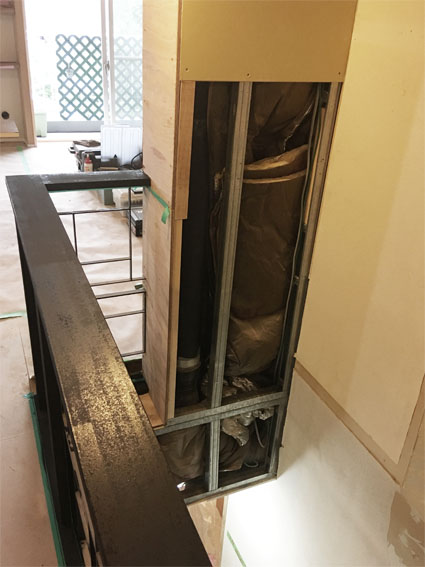 ▼階段廻りの壁を取り払った部分は、新しく手摺を計画しています。