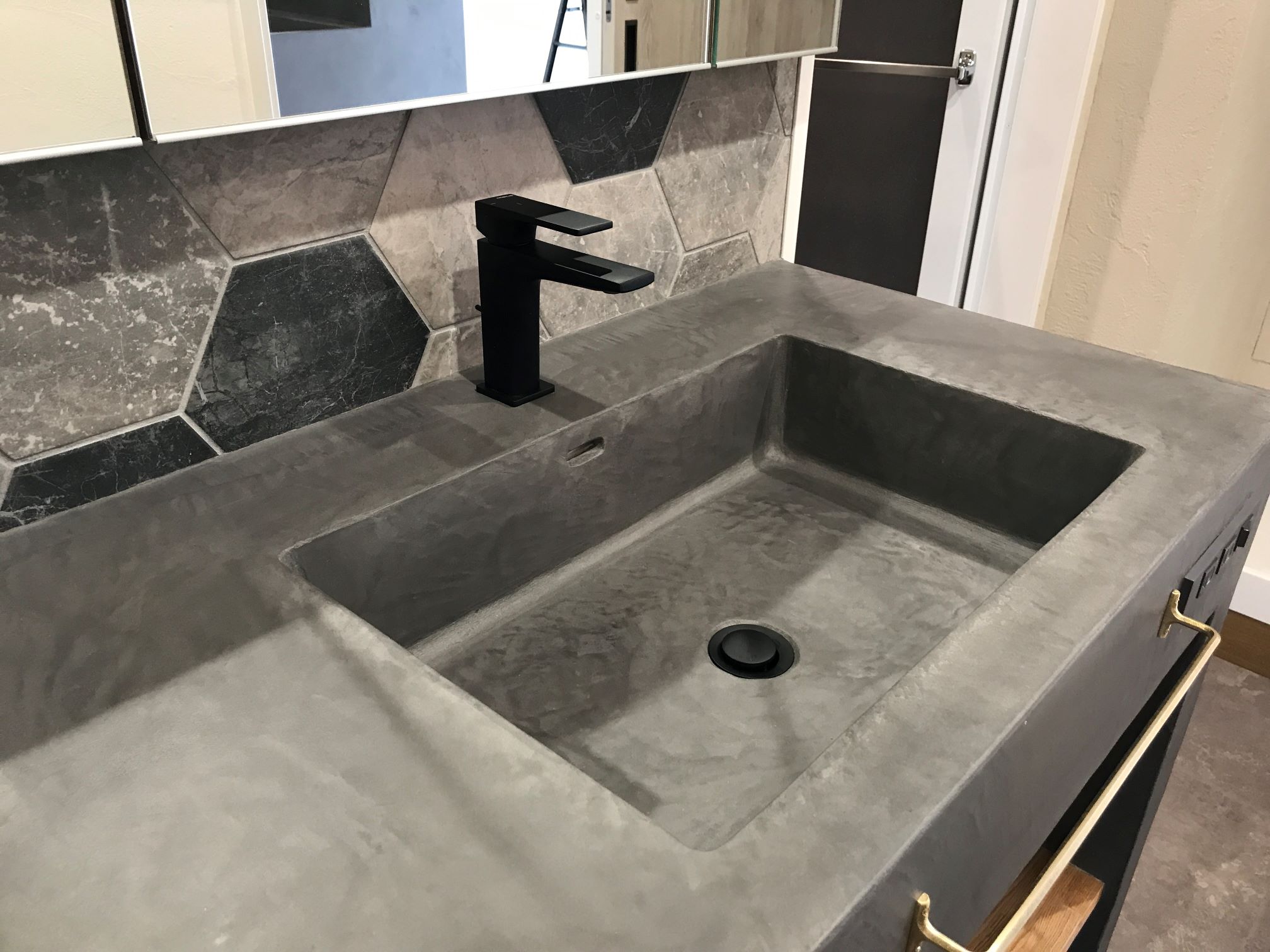 ↓仕上げ材なので、シンクと壁を同じ素材でシームレスに繋ぐこともできるように