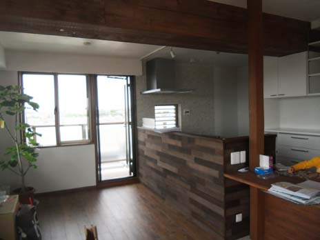 キッチンを移設、LDKがひと続きになるオープンな間取りにリノベーションを致しました。