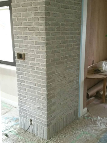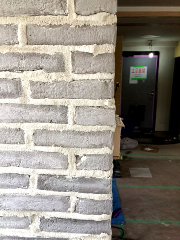 ブリックタイル施工の真っ最中、ちょうどお施主さまが現場確認に来られました。