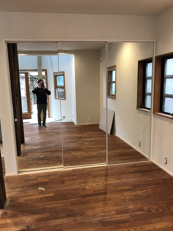 そんなところから、、姿見とクローゼットドアを兼ねるアイディアで完成したのがこちら。