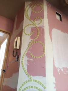着工中、モザイクタイルのアクセントを、お客様と一緒に貼って参りました。奥さまと佐々木の共作! レモン色のガラスモザイクは、キッチンからいつも見える場所に貼らせて頂き、奥さまの上げポイントに♪ 工事中のお打合せとなりましたが、「こんなこと...