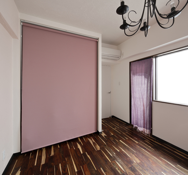 その桜色に合わせて大人っぽいピンクのロールスクリーンでフェミニンなお部屋に。