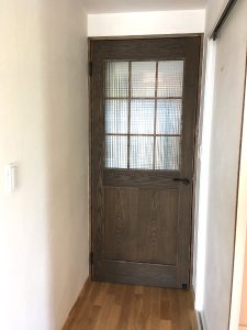 LDKの入口 オリジナルの建具をご採用頂きました。 ハンドルも標準品から変更しています。 オリジナルではハンドルの他にも ガラスをアンティーク調にしたり、 色を特殊な色に変更したり、 ガラスのデザイン...