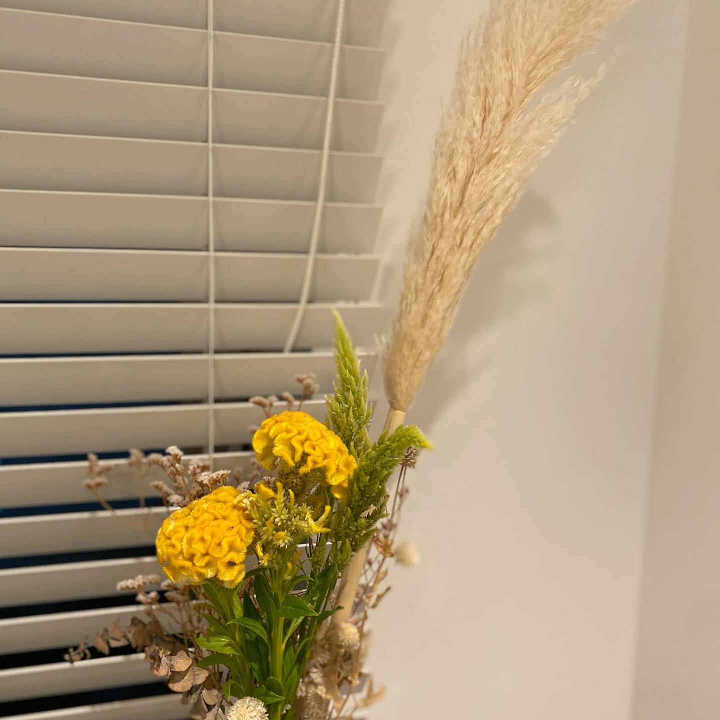 今月はパンパス、ケイトウのイエローとシルフィールドにしました。