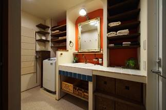 鮮やかな『オレンジ』で、朝起きて元気の出る洗面スペースに♪