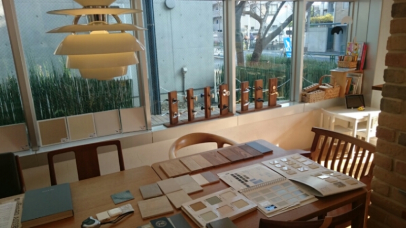 スタジオでの打合わせ後、カーテンの仕様決めで、世田谷にあるオーダーカーテンの『サンクリドー』さんへ移動。