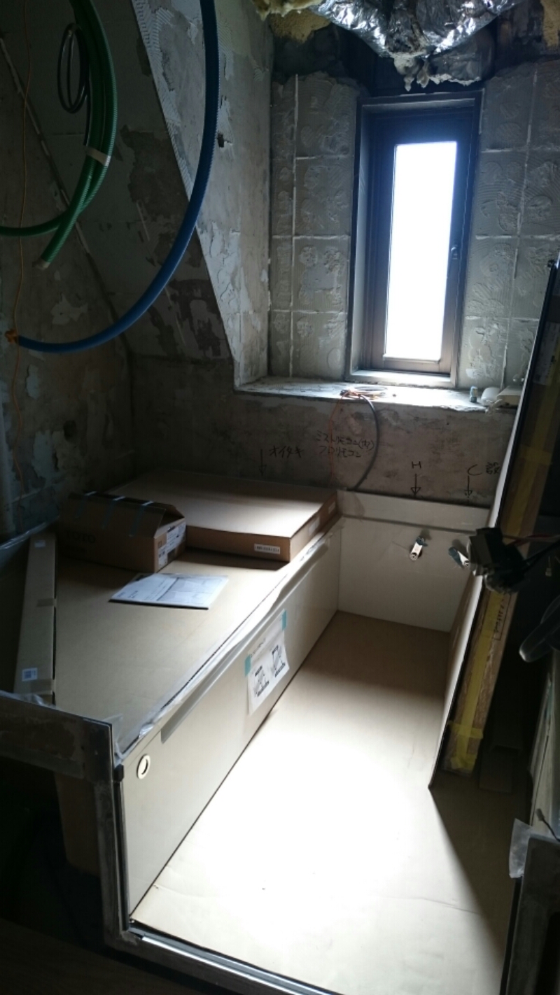 在来浴室でタイル張りだったお風呂も解体され、