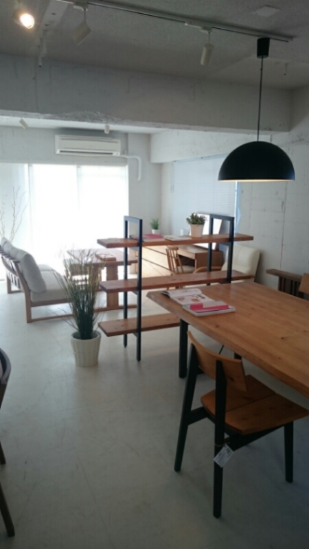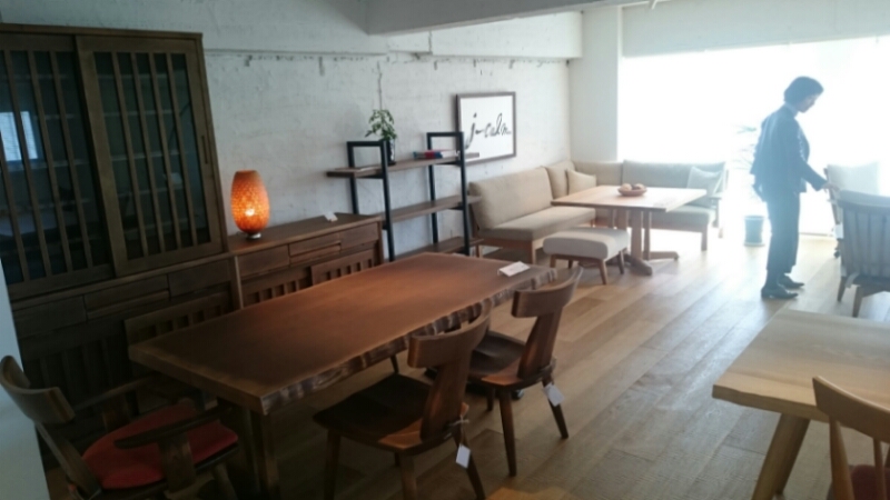無垢の木で樹種(ウォールナット、チーク、オーク、メープルなど)や脚形状が選べて、お手頃価格な家具メーカーでした。