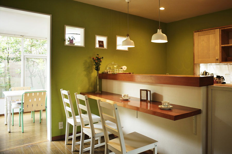 1Fをカフェ、2Fを住居にした店舗兼自宅の事例です。