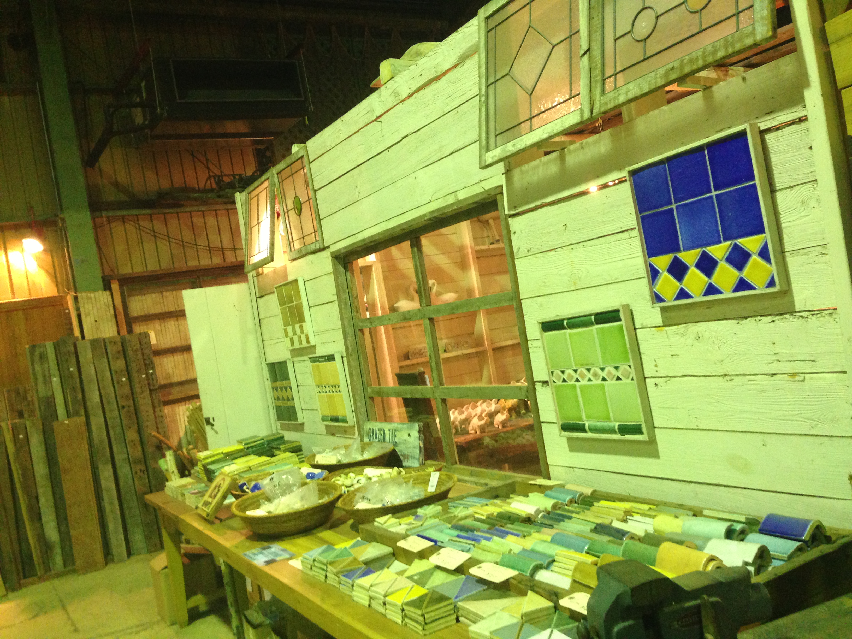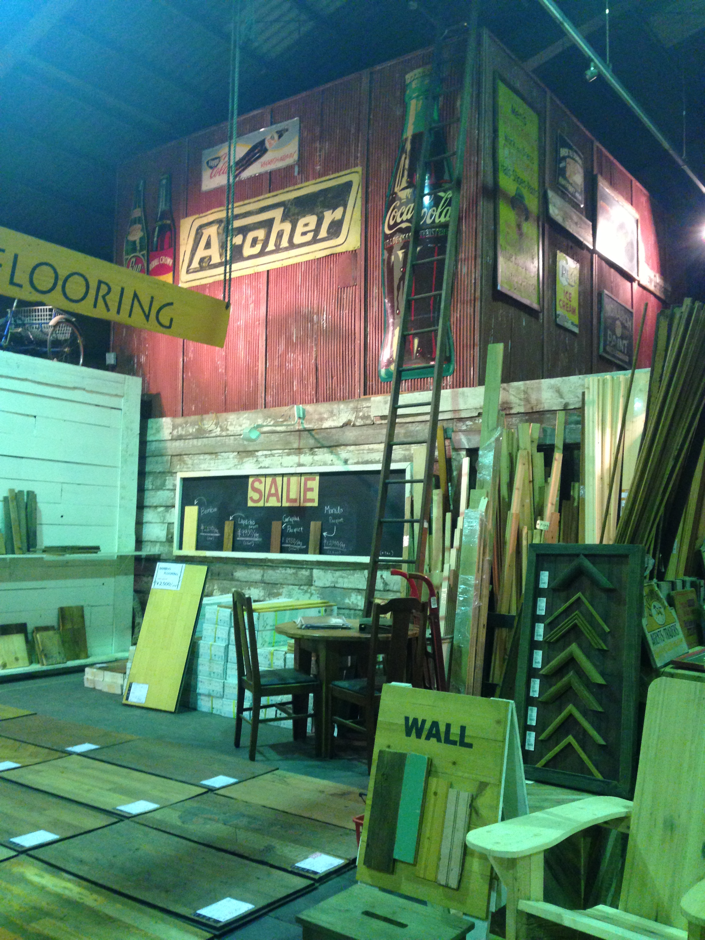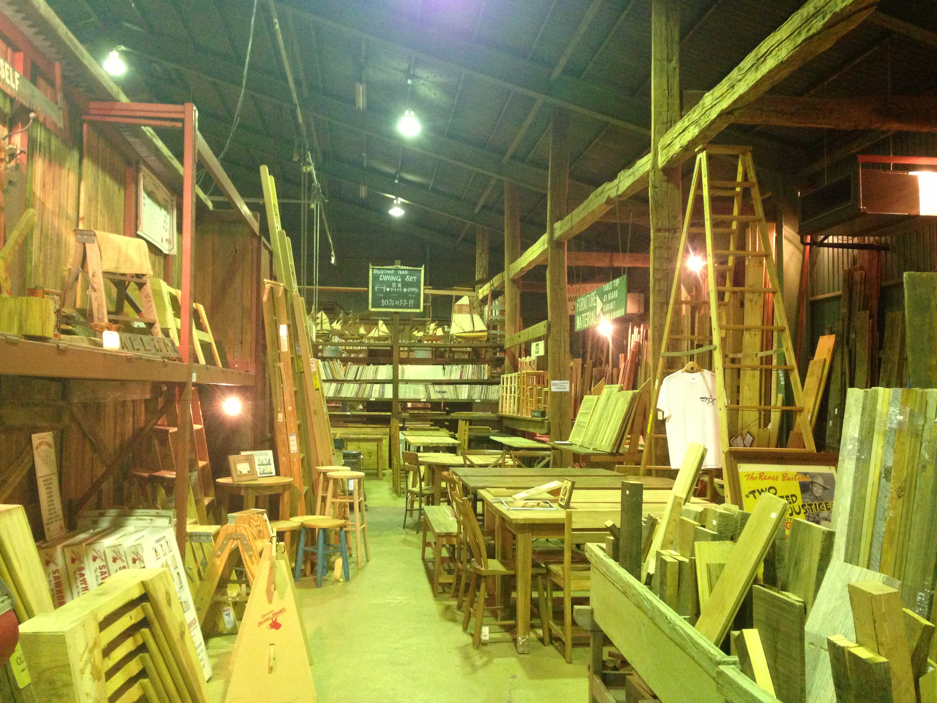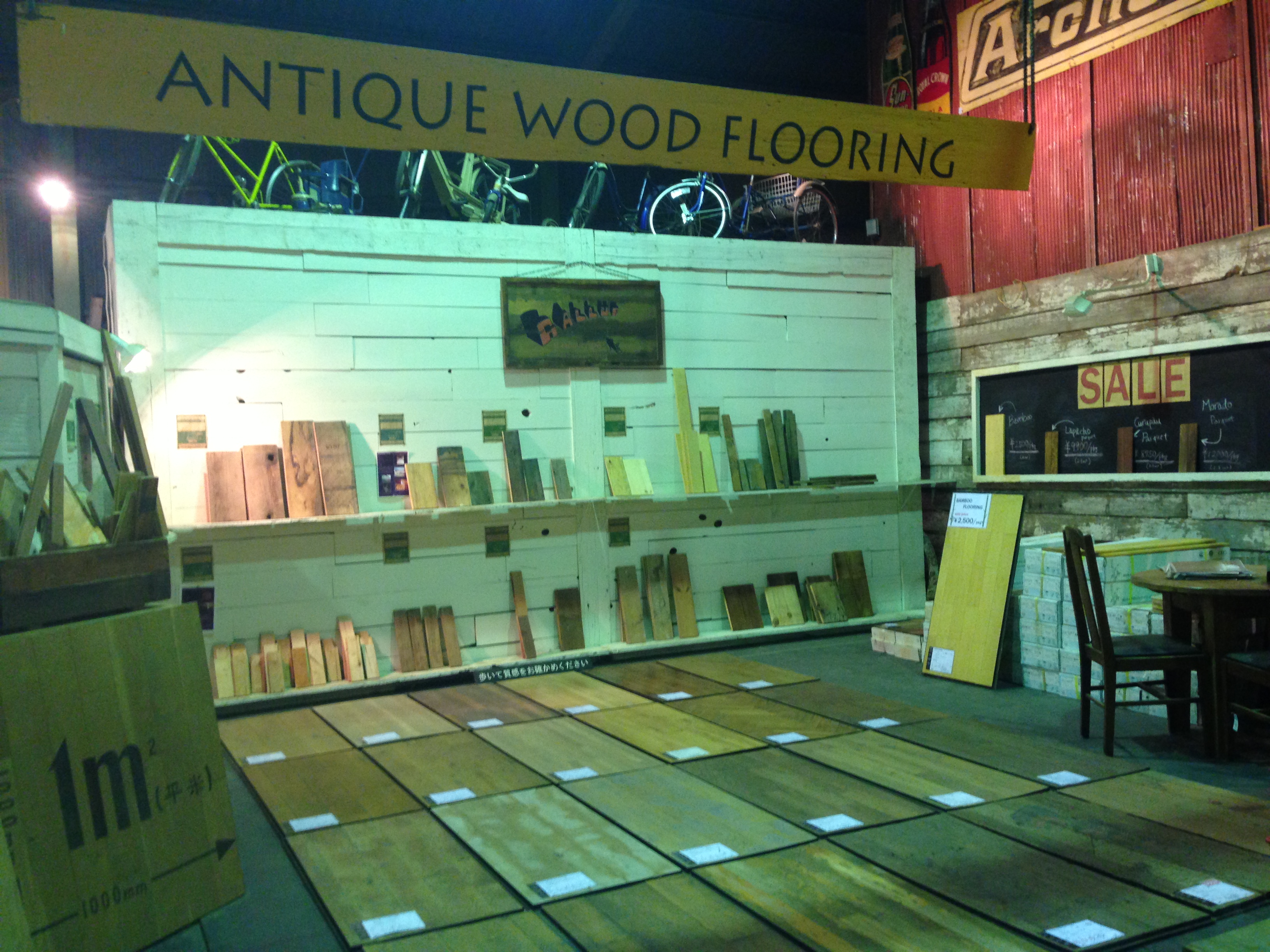 中へ入ると、とても広い空間に、数多くの古材や家具や金物などの小物が展示されておりました。