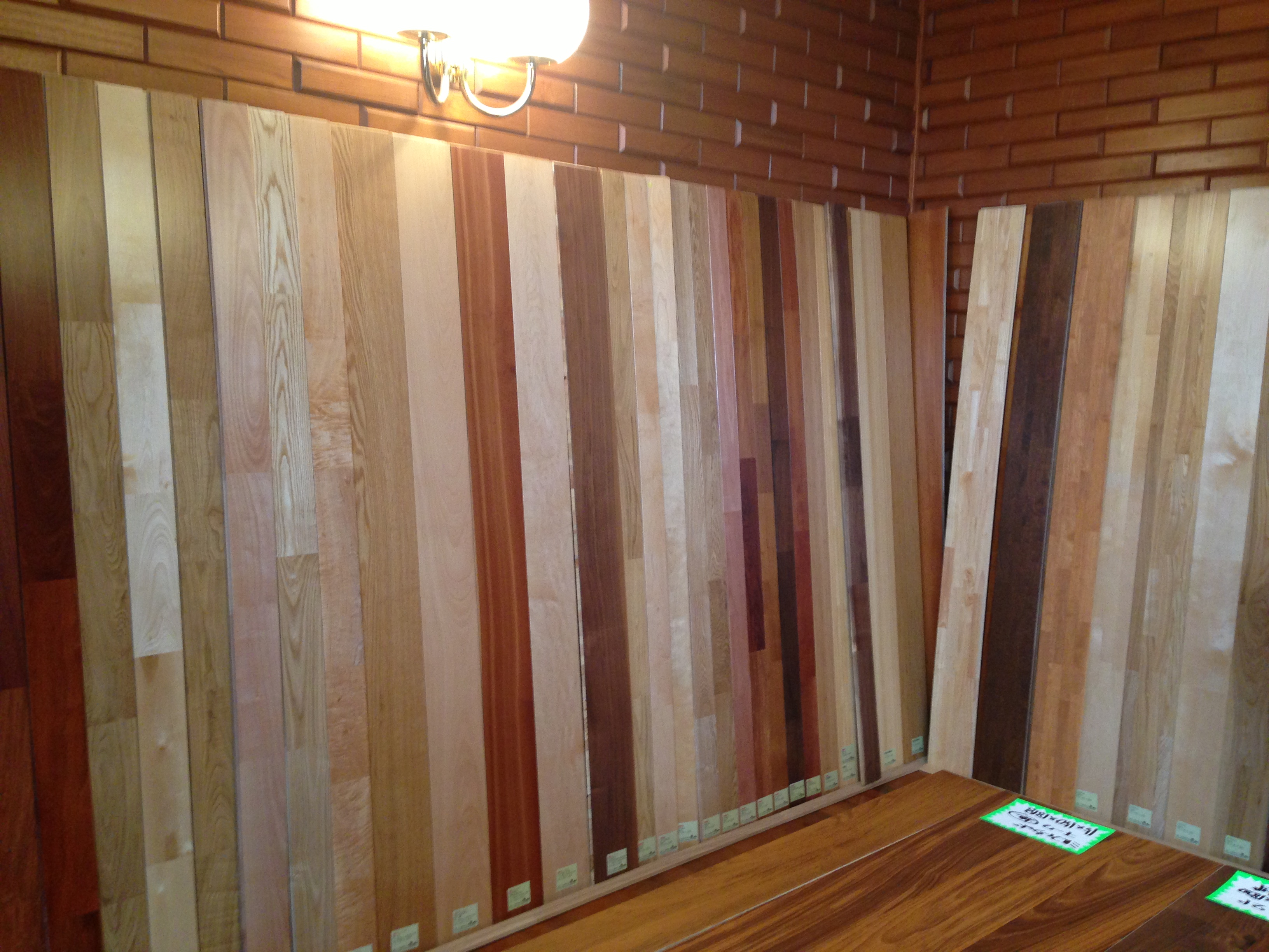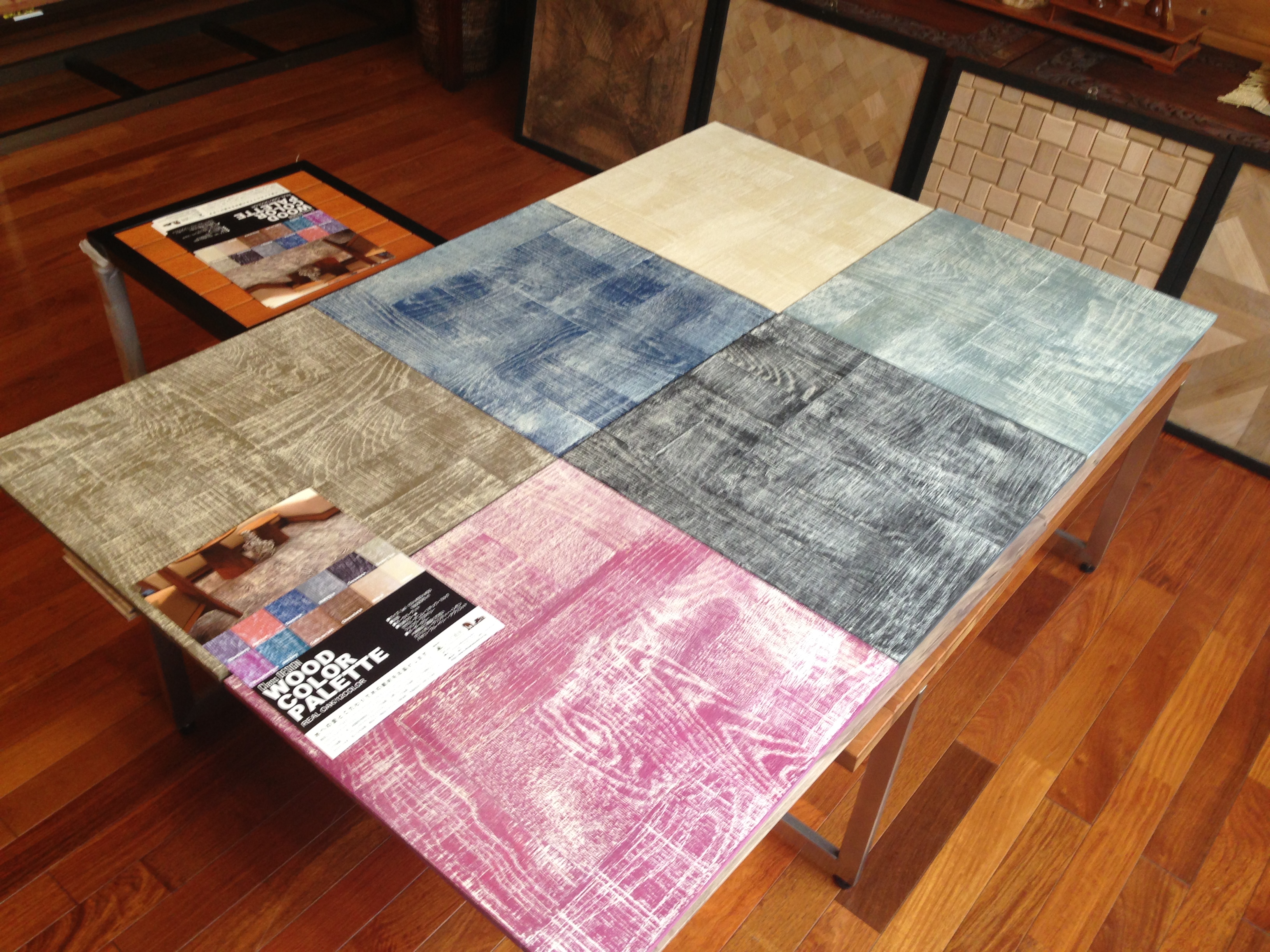 床暖房対応の無垢フローリングや、竹集成材、ウッドカラーパレット(上記写真)