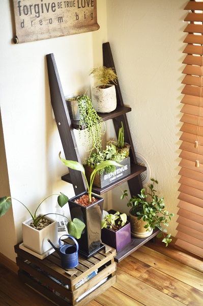 グリーンが映える空間にしたいとご要望いただき、木の質感を出しながらブラックをアクセントにまとめることになりました。