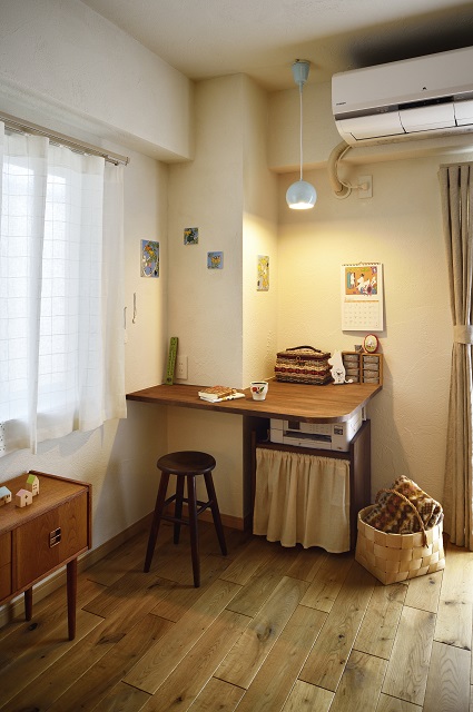 LDKの一角には既存の柱型を活かしてワークスペースを造作。