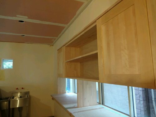 同じバーチ材であわせてカウンターと棚を設け、広々とした作業スペースになりました。