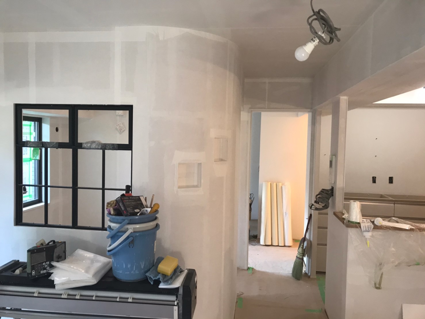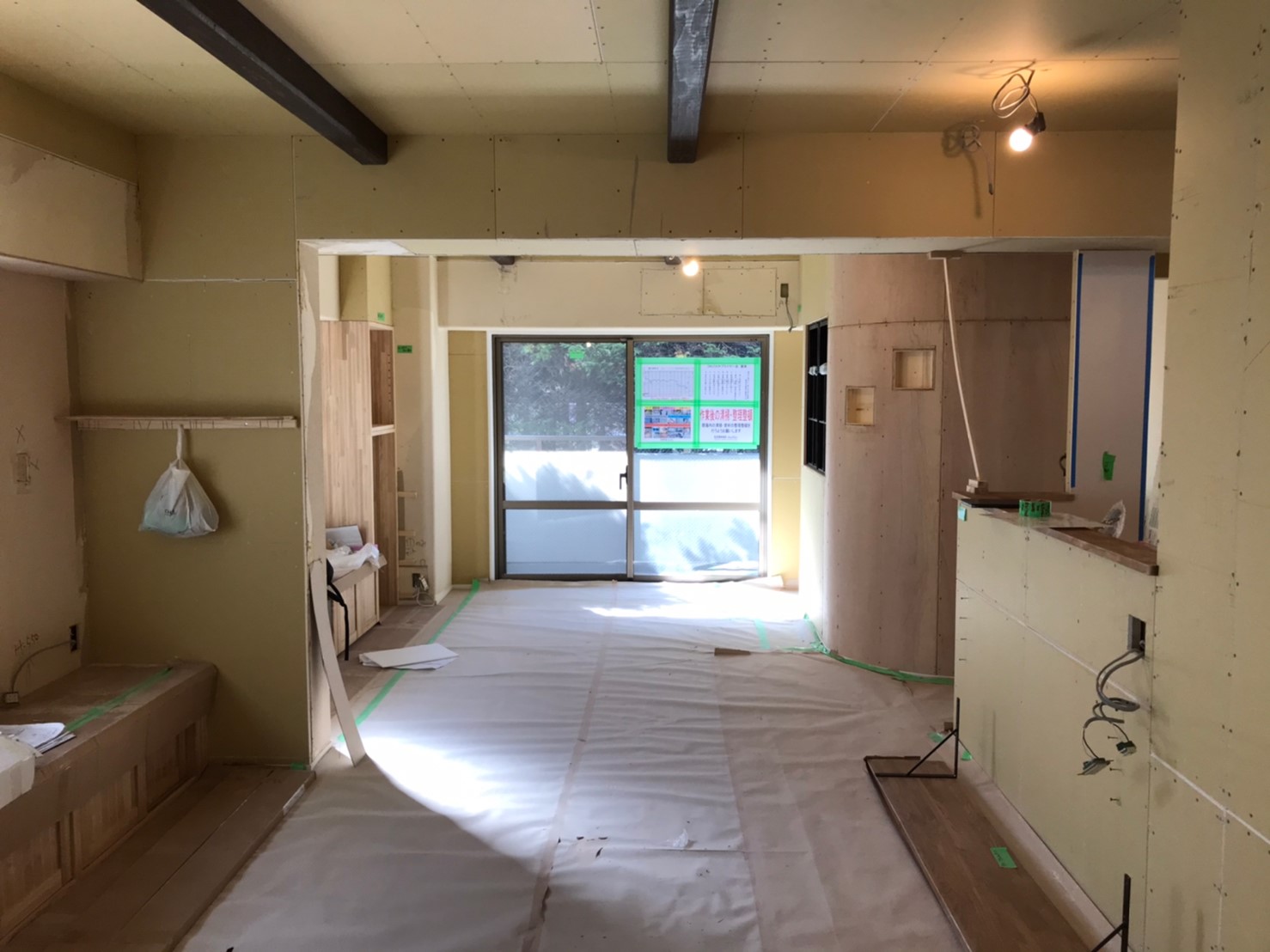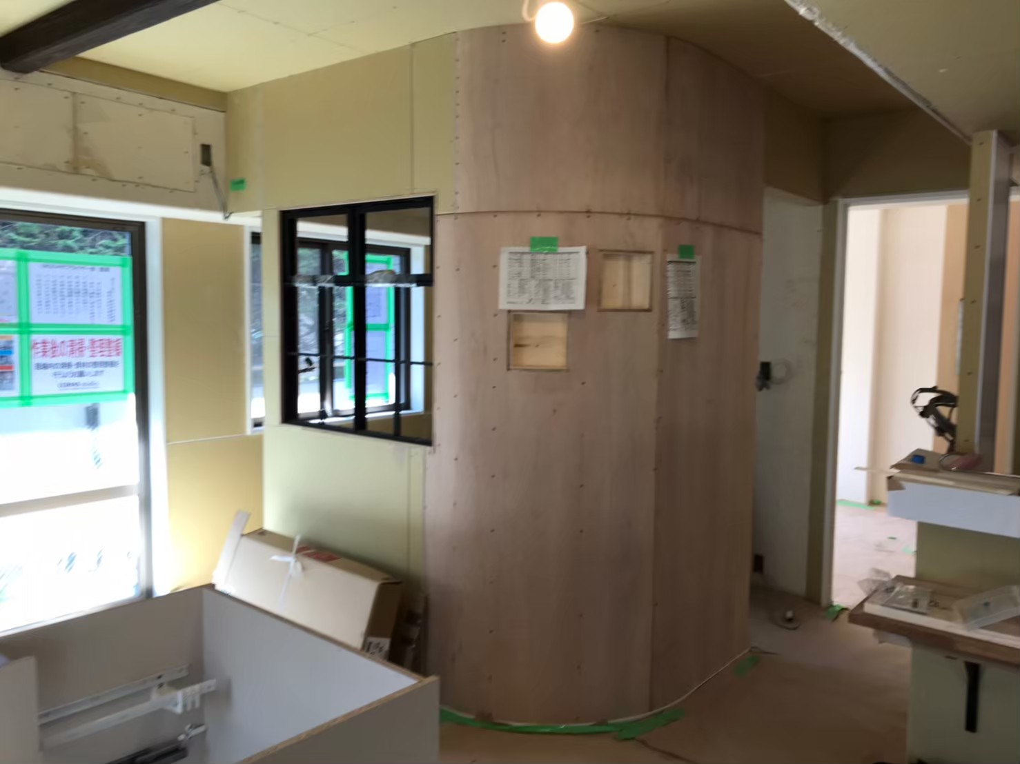 ニッチの位置を検討する為、段ボールを巻いてくれました!