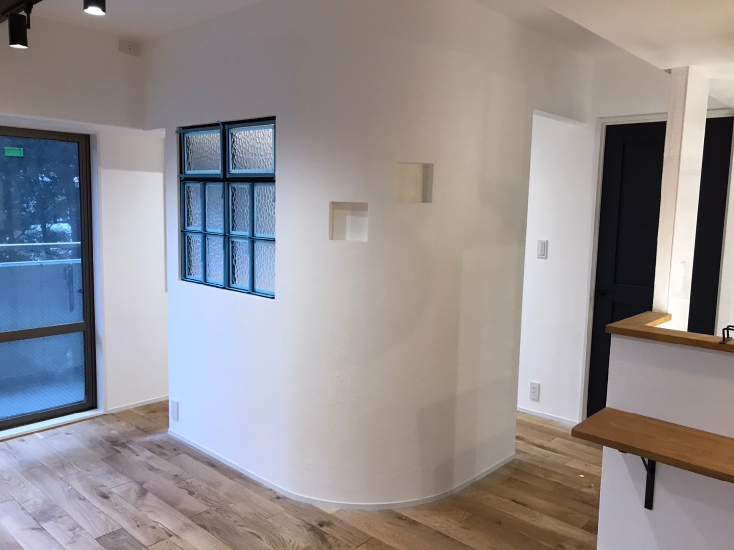 ボードと曲げべニアを貼ると、完成形が見えて来ますね~。
