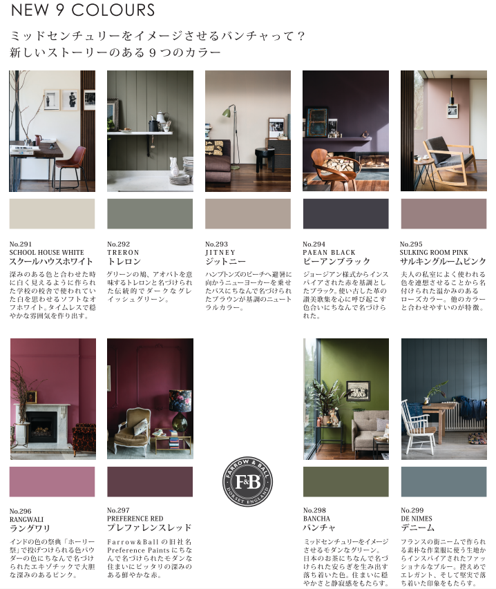 FARROW&BALL からファッショナブルな 9 色の新色が登場しました。