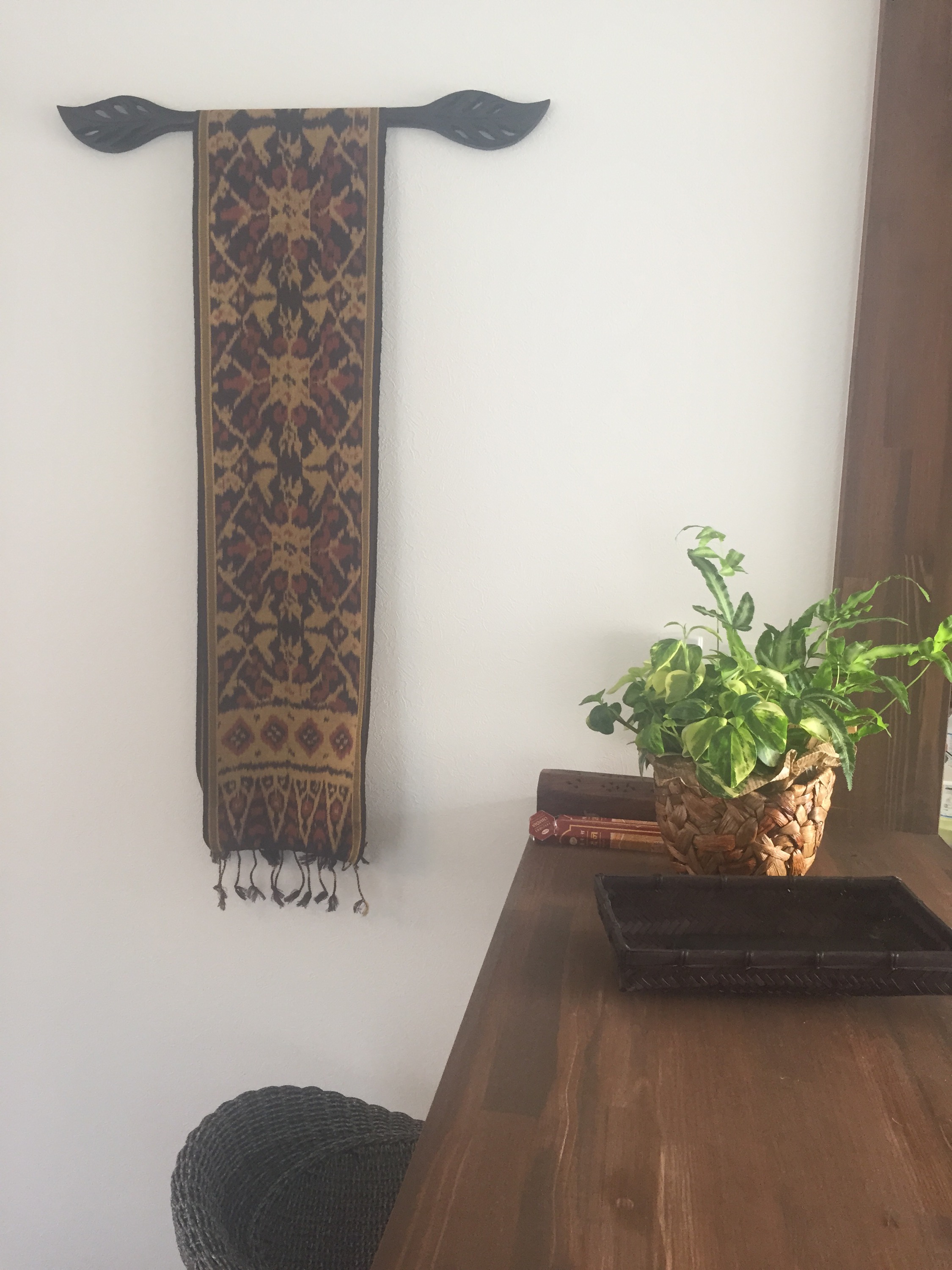 バリテイストの家具、鏡、イカット、時計、カーテン、