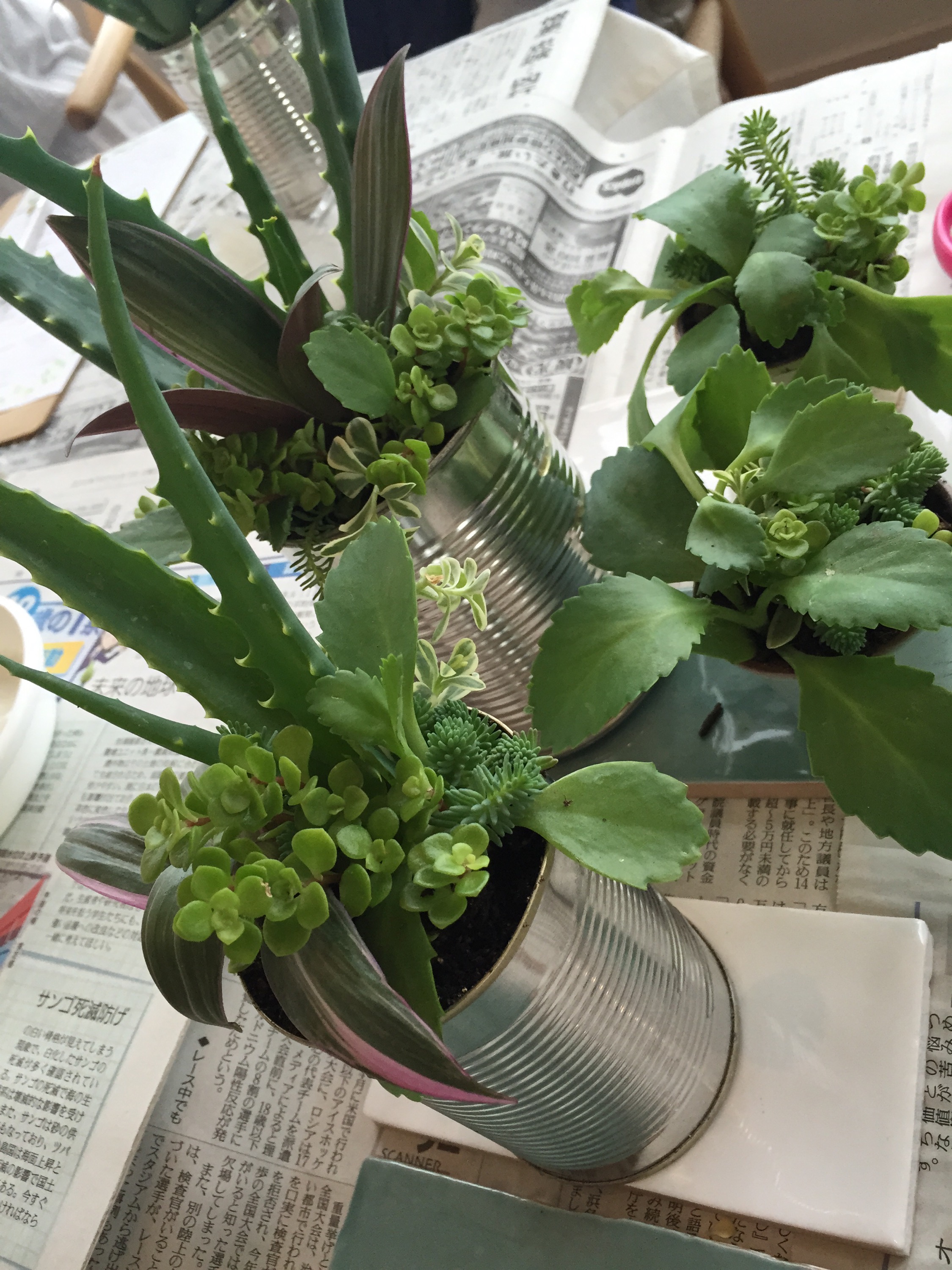 お子様も小さい入れ物に、一緒に寄せ植え♪