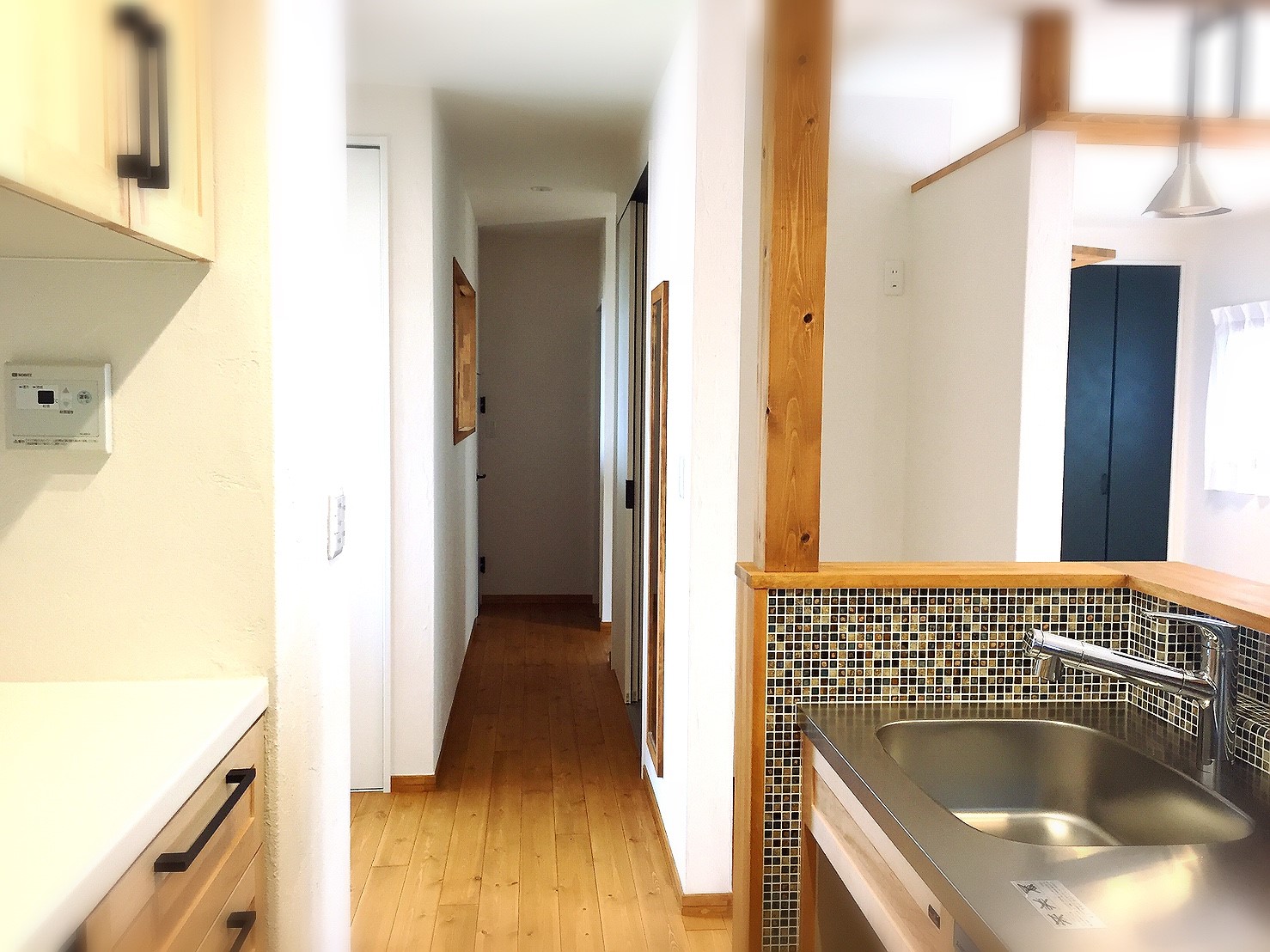 キッチンから廊下を真っ直ぐ行って右に曲がると
