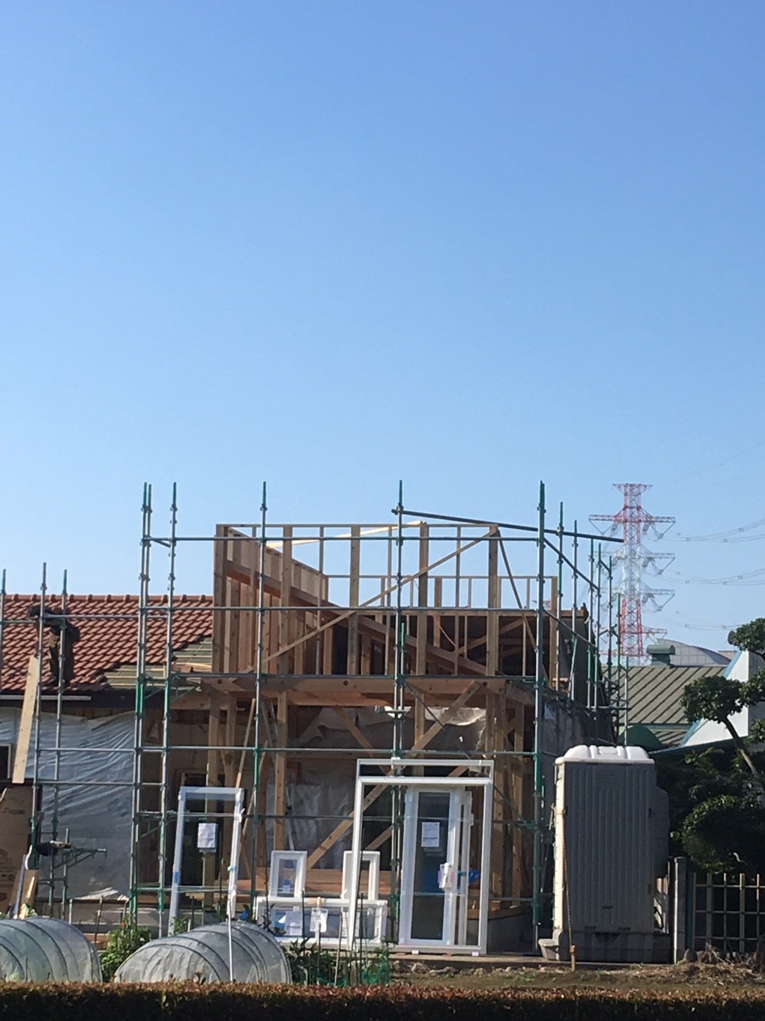 既存の屋根は一部瓦を取って新しいパラペット部との境は現在こんな感じ。。。