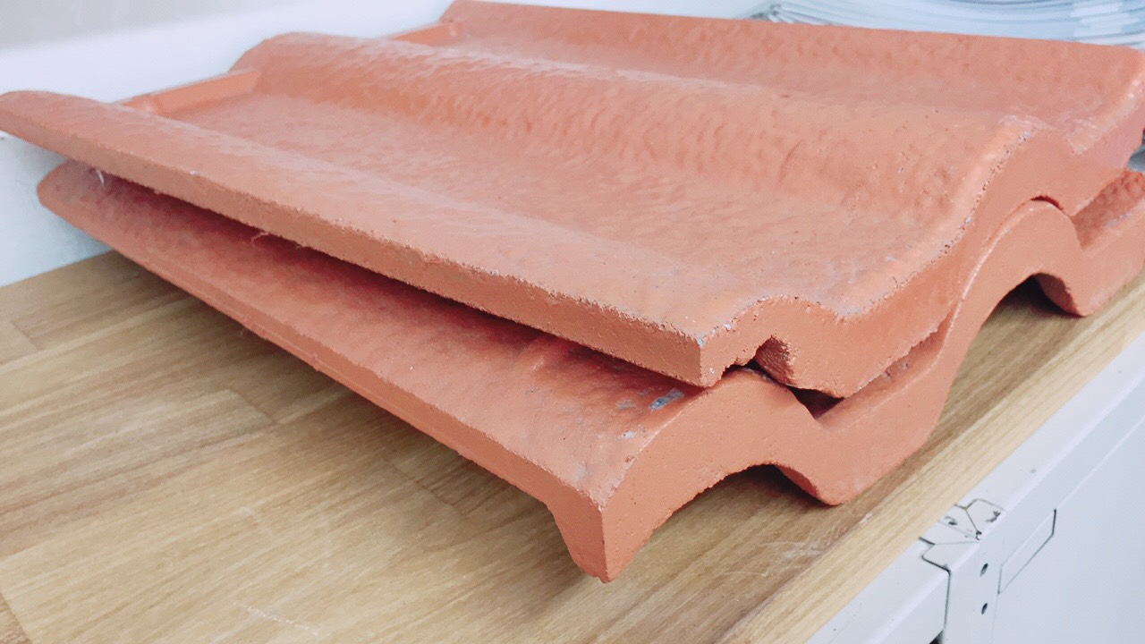新しい屋根のところには、できるだけ元々の屋根と近い「オレンジ色」の瓦を用意。