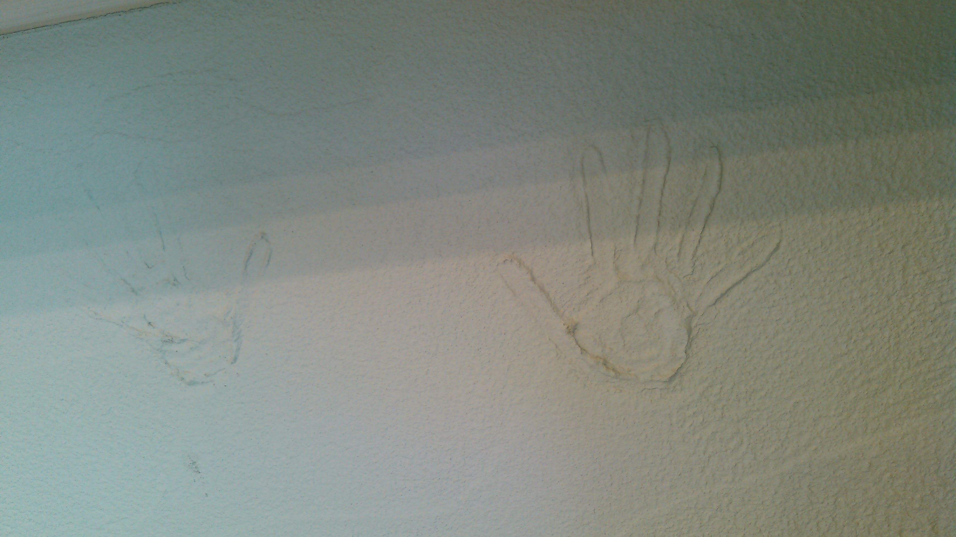 珪藻土壁にお子さん達の手形が押してありました(#^.^#)