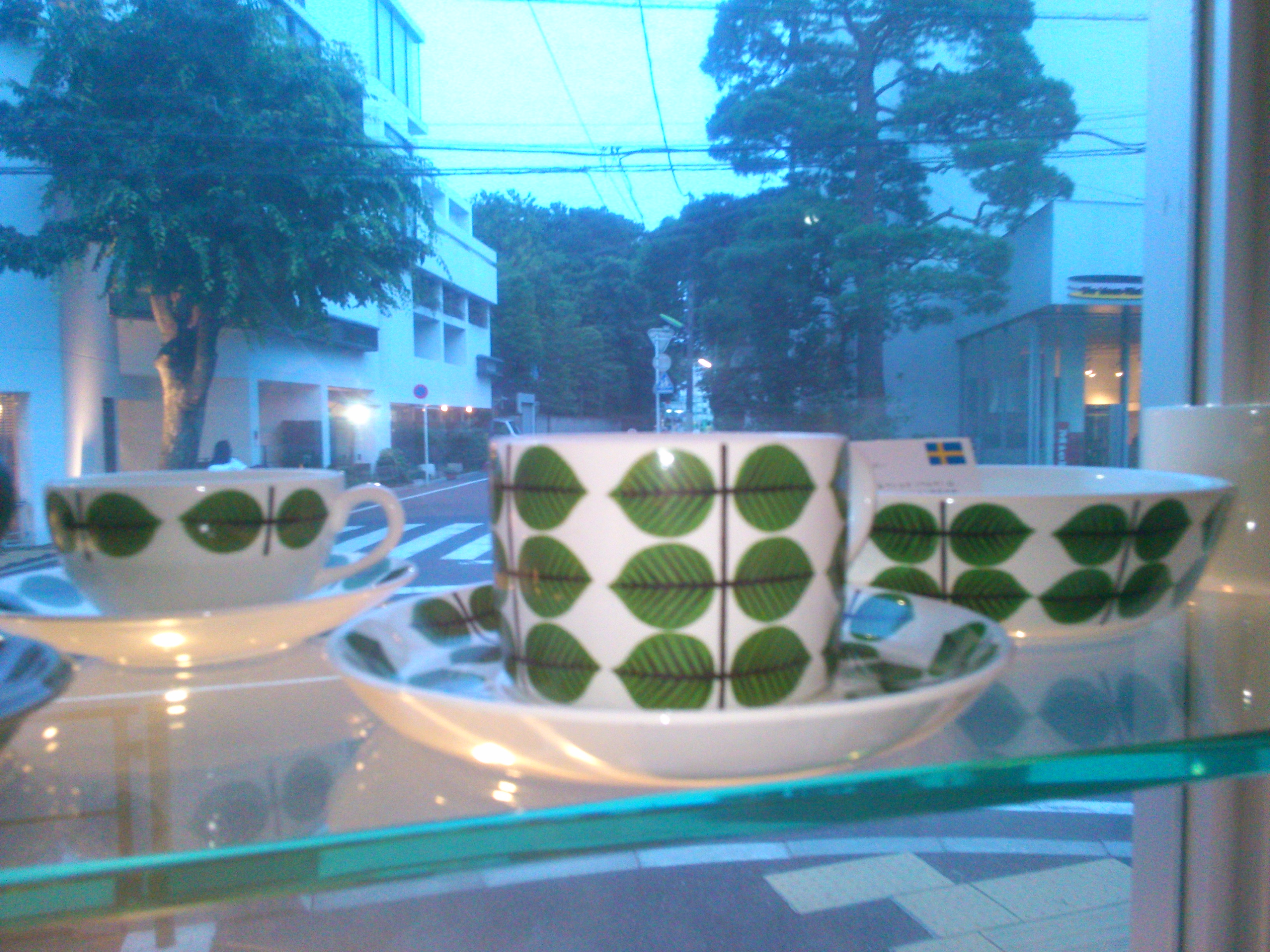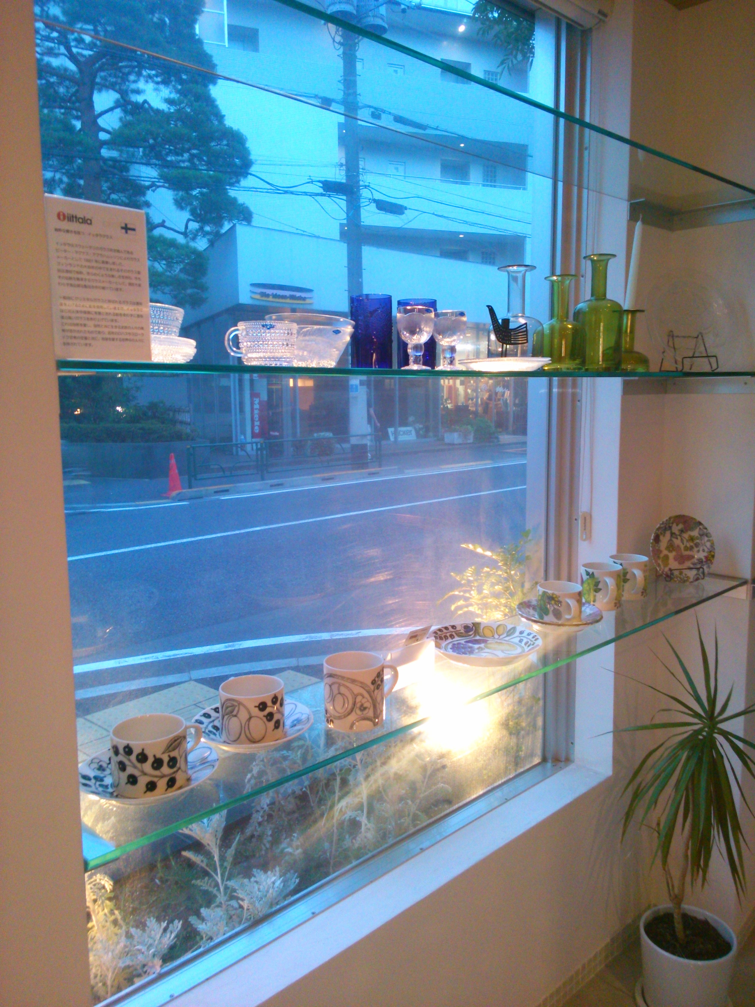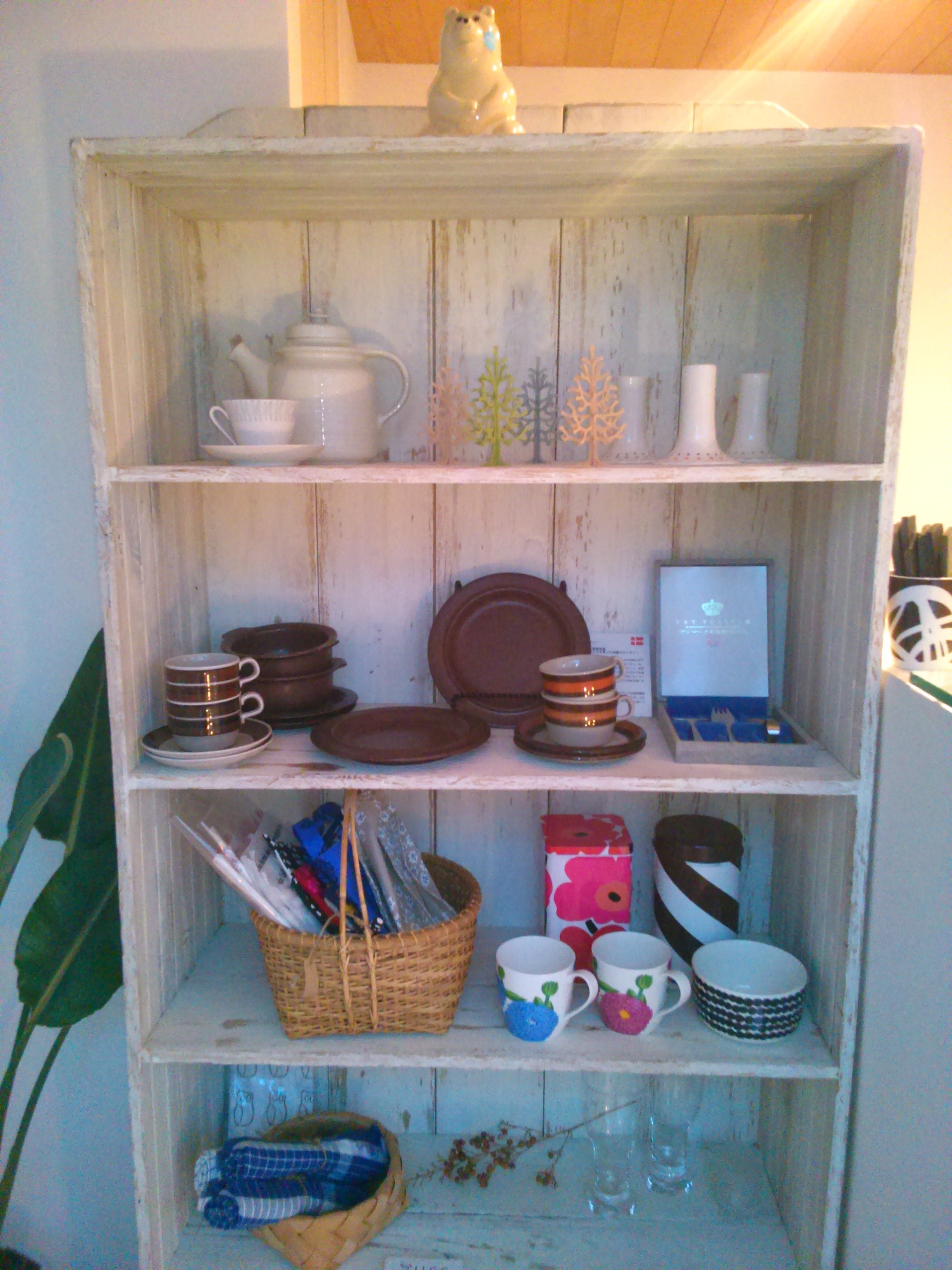 北欧の食器が正面ガラスの目立つところに陳列されました!!