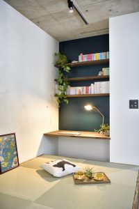 ワークスペースは小上がりを椅子がわりに出来るよう高さを調整しています。
