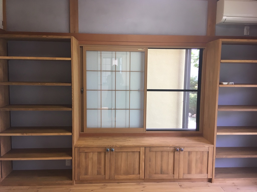 腰窓の下にはLOHAS materialの造作家具をお入れしました。