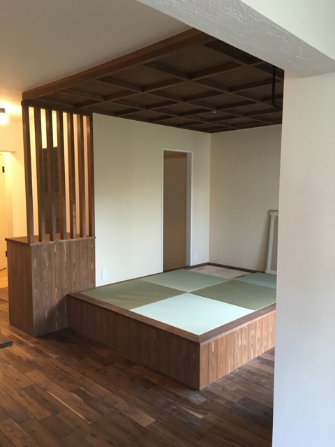 天井はご主人様のお好きな和のテイストをイメージして格天井を造作しました。