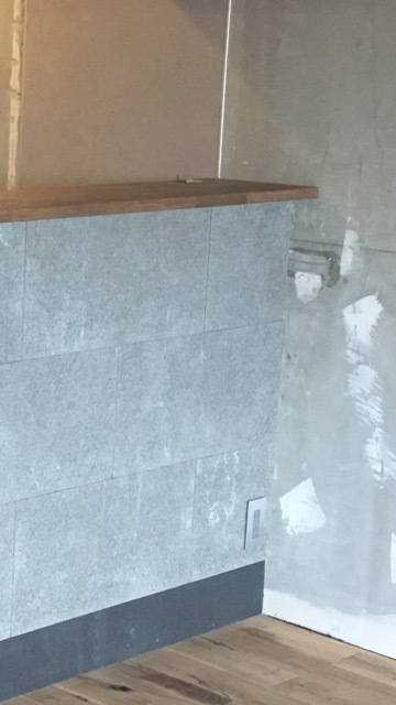 段差をつけたことによりのっぺりせず迫力あるかっこいい腰壁になりました^_^