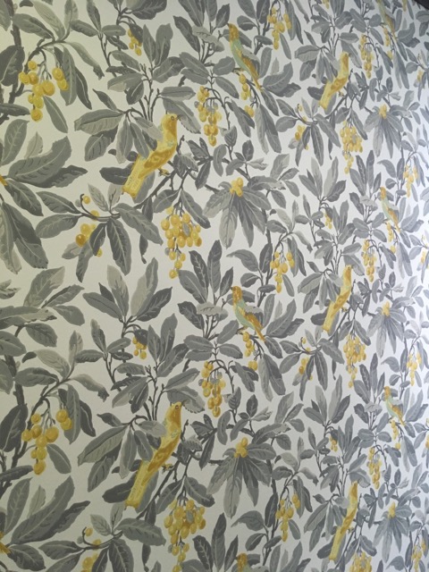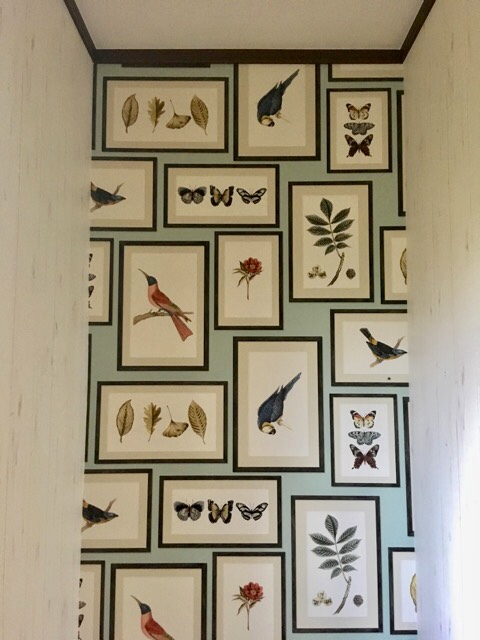 額縁に入ってる鳥や植物がなんともおしゃれ、鮮やかな色合いはアクセントクロスにぴったりです♪