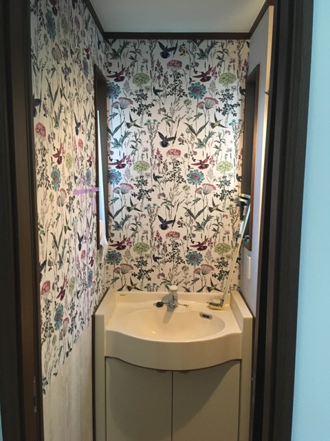 2つのトイレも柄違いの小鳥さんのクロスを貼りました。