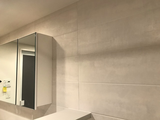 モルタルのような風合いで洗練されたcoolな洗面室になりました。