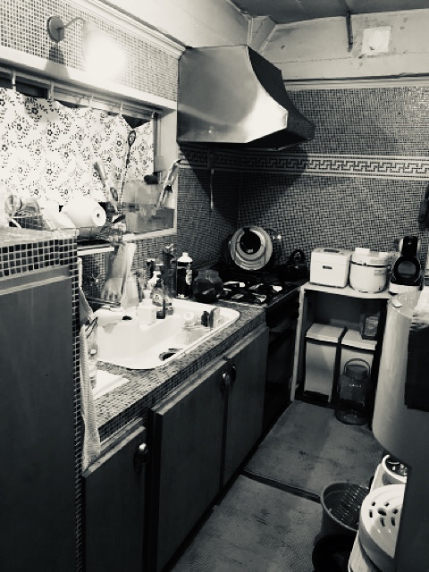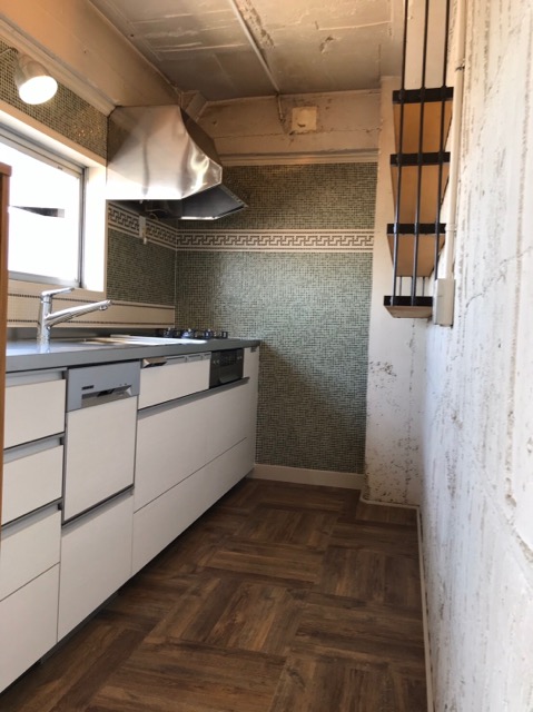 窓下のモザイクタイルを綺麗に剥がしてもらい、