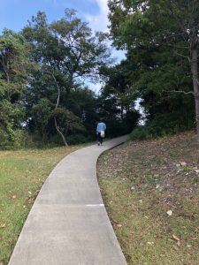 芝生の中の舗装された道を進み、丘を 1周するようになっているアプローチ。