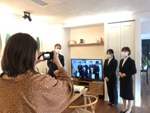 本社での入社式ではなく、各支店とオンラインで繋いでの入社式に。