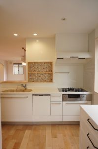 取れない壁には、ニッチを作り調味料などを並べられるように^o^