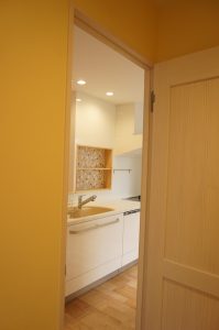 ユーティリティへは、廊下とキッチン2方向から出入りできるように。